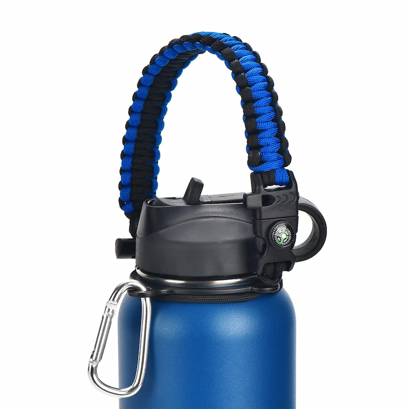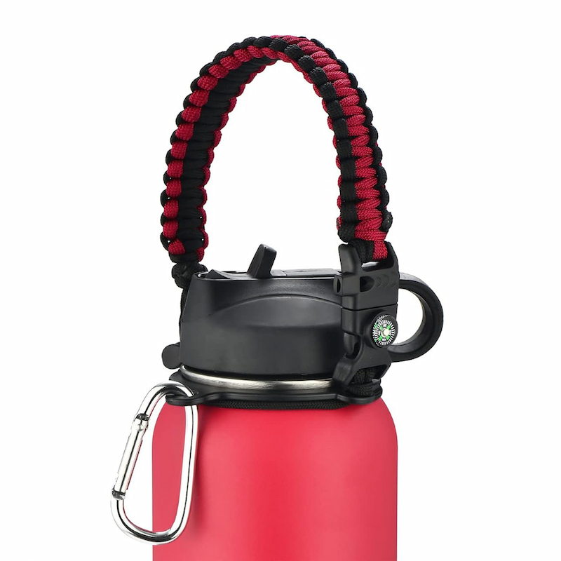 It is woven with high-strength nylon climbing ropes, providing a comfortable grip and anti-slip performance. It is sturdy and durable, not afraid of breaking. It comes with a metal climbing buckle and can be easily hung on a backpack, belt or even a bicycle handlebar. It's convenient to carry a cup for commuting, fitness or outdoor hiking. It also hides a mini compass, which is extremely practical for emergencies during outdoor trips!